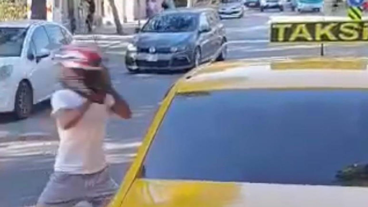 Trafikte şiddet olayları tüm uyarılara ve yüksek cezalara rağmen devam ediyor. Bunun son örneği dün İzmir’de yaşandı. İzmir Bornova’da Ege Üniversitesi kavşağında iddiaya göre motosiklet sürücüsü A.Y. (27) ile ticari taksi sürücüsü S.T. (44) arasında yol verme anlaşmazlığı yaşandı. Motosikletten inen sürücü kaskını çıkararak taksiciye saldırdı. Cama defalarca vurarak kırmaya çalışan motorlu şahıs ile otomobilden inen taksici arasında yumruklaşma başladı. Kavga, çevredeki vatandaşların araya girmesiyle son buldu. Motosikletli şahıs, vatandaşların müdahalesiyle olay yerinden güçlükle uzaklaşırken yaşananlar ise cep telefonu kamerasıyla kaydedildi. Emniyet görevlileri olay yerine gelmeden her ikisi de yoluna devam etti.