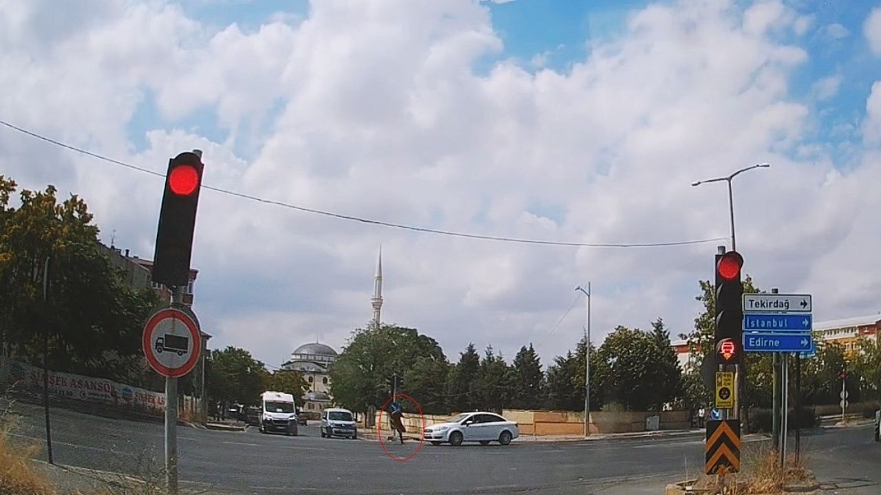 Tekirdağ Çorlu’da yola kontrolsüz çıkan yayanın araba çarpması sonucu yara almadan atlattığı kaza kameraya yansıdı. Kaza sonrası yayanın herhangi bir tepki vermeyerek yoluna devam ettiği gözlendi.