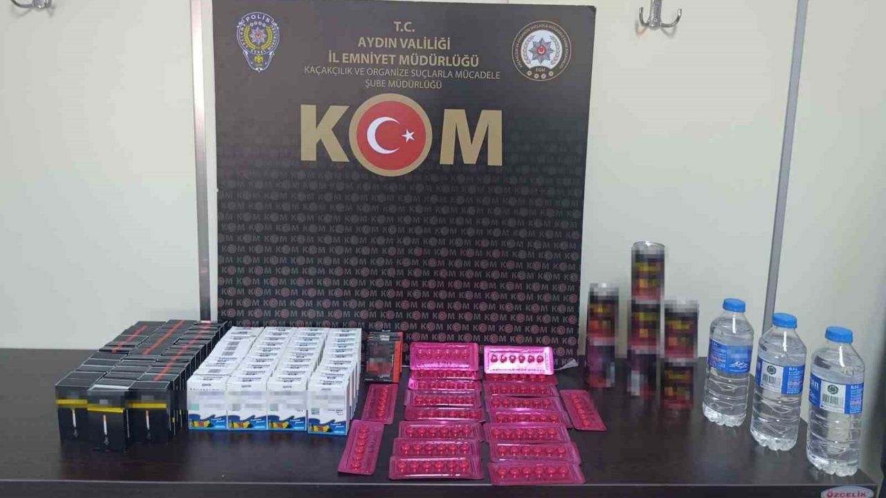 Aydın İl Emniyet Müdürlüğü ekiplerinin halk sağlığını tehdit eden ve vergi kaybına yol açan kaçakçılıkla mücadele çalışmaları aralıksız sürüyor. Edinilen bilgiye göre, Aydın İl Emniyet Müdürlüğü Kaçakçılık ve Organize Suçlarla Mücadele Şube Müdürlüğü ekipleri tarafından Köprülü Veysi Paşa Mahallesi Batı Gazi Bulvarı üzerindeki bir iş yerinde arama gerçekleştirildi. Yapılan aramada cinsel içerikli olduğu değerlendirilen 114 adet hap, 7 kutu içecek ve 280 adet jel ile 720 adet tütün doldurulmuş makaron ve 1,5 litre ev yapımı alkollü içki ele geçirildi. Olayla ilgili G.Ö. isimli şüpheli şahıs hakkında Kaçakçılıkla Mücadele Kanunu'na muhalefet suçundan adli işlem başlatıldı.