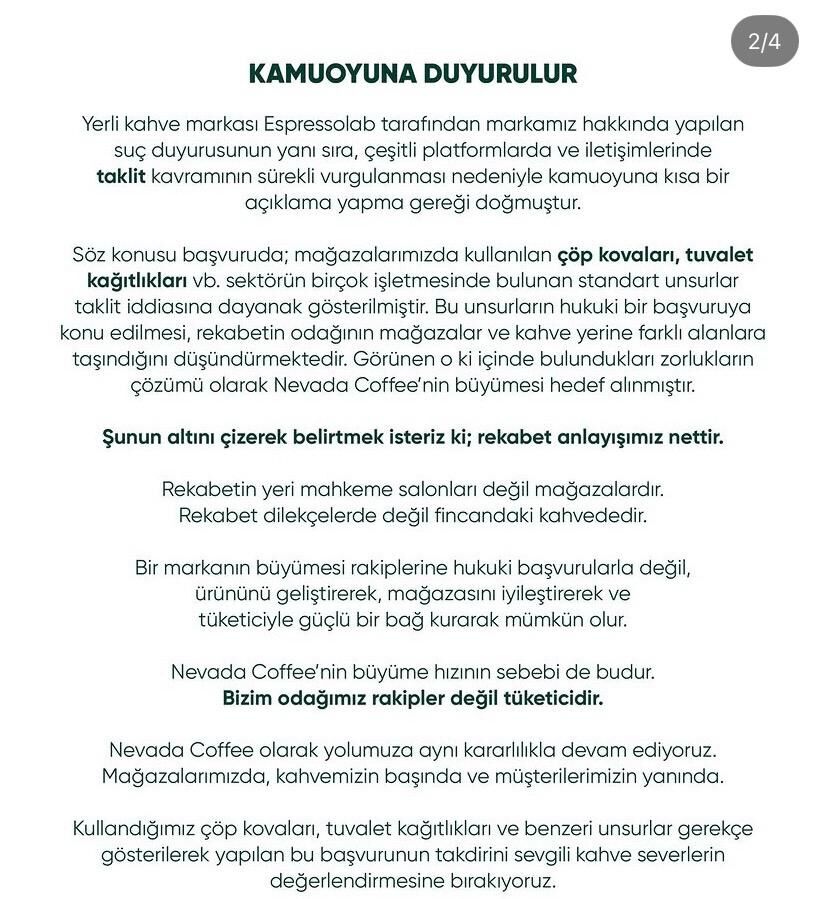 Nevada Coffee açıklamasında rekabet anlayışını şu ifadelerle öne çıkardı: