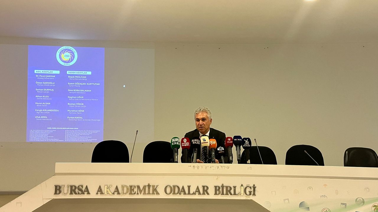 Bursa Akademik Odalar Birliği (BAOB) Ortak Toplantı Salonu’nda düzenlenen basın toplantısında Dr. Fevzi Çakmak, Ziraat Mühendisleri Odası Bursa Şubesi Yönetim Kurulu için aday olduğunu açıkladı.